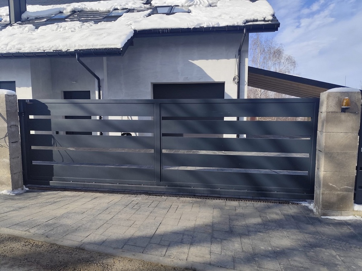 Brama przesuwna nowoczesna podłużne profile BP 015