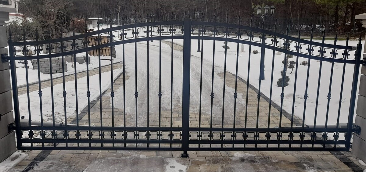 Brama dwuskrzydłowa, wjazdowa, uchylna, kuta BU 105