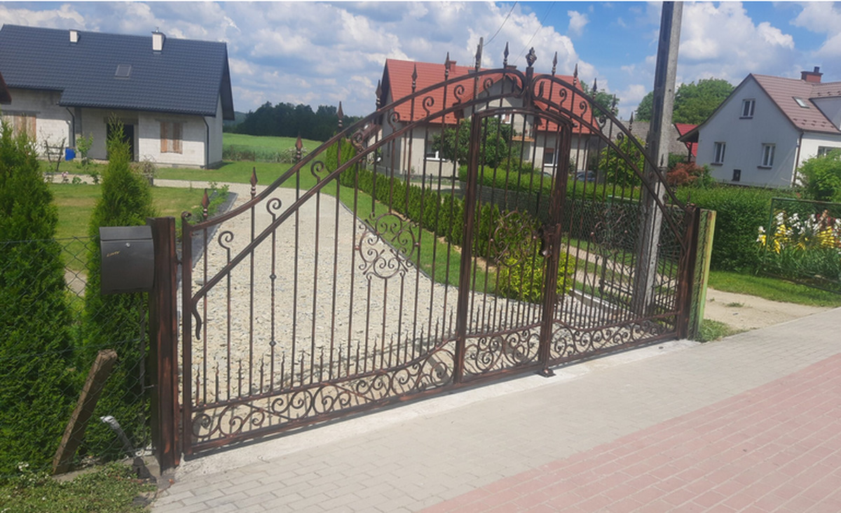 Brama ogrodzeniowa wjazdowa, uchylna, kuta BU 100