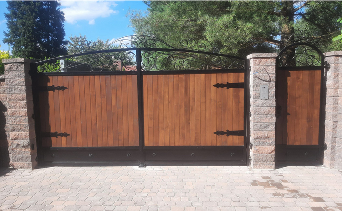 Brama ogrodzeniowa, wjazdowa, uchylna, kuta we wzorki BU 092