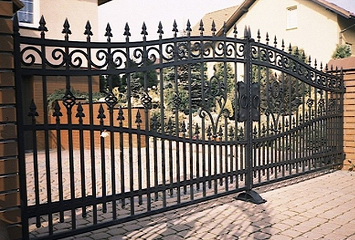 Brama ogrodzeniowa, wjazdowa, uchylna, kuta we wzorki BU 092