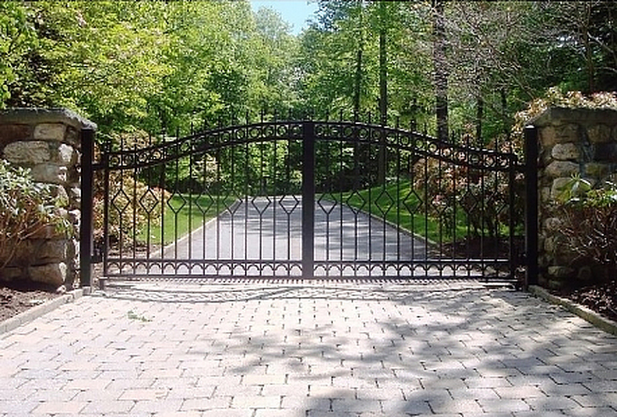 Brama ogrodzeniowa, wjazdowa, uchylna, kuta we wzorki BU 092