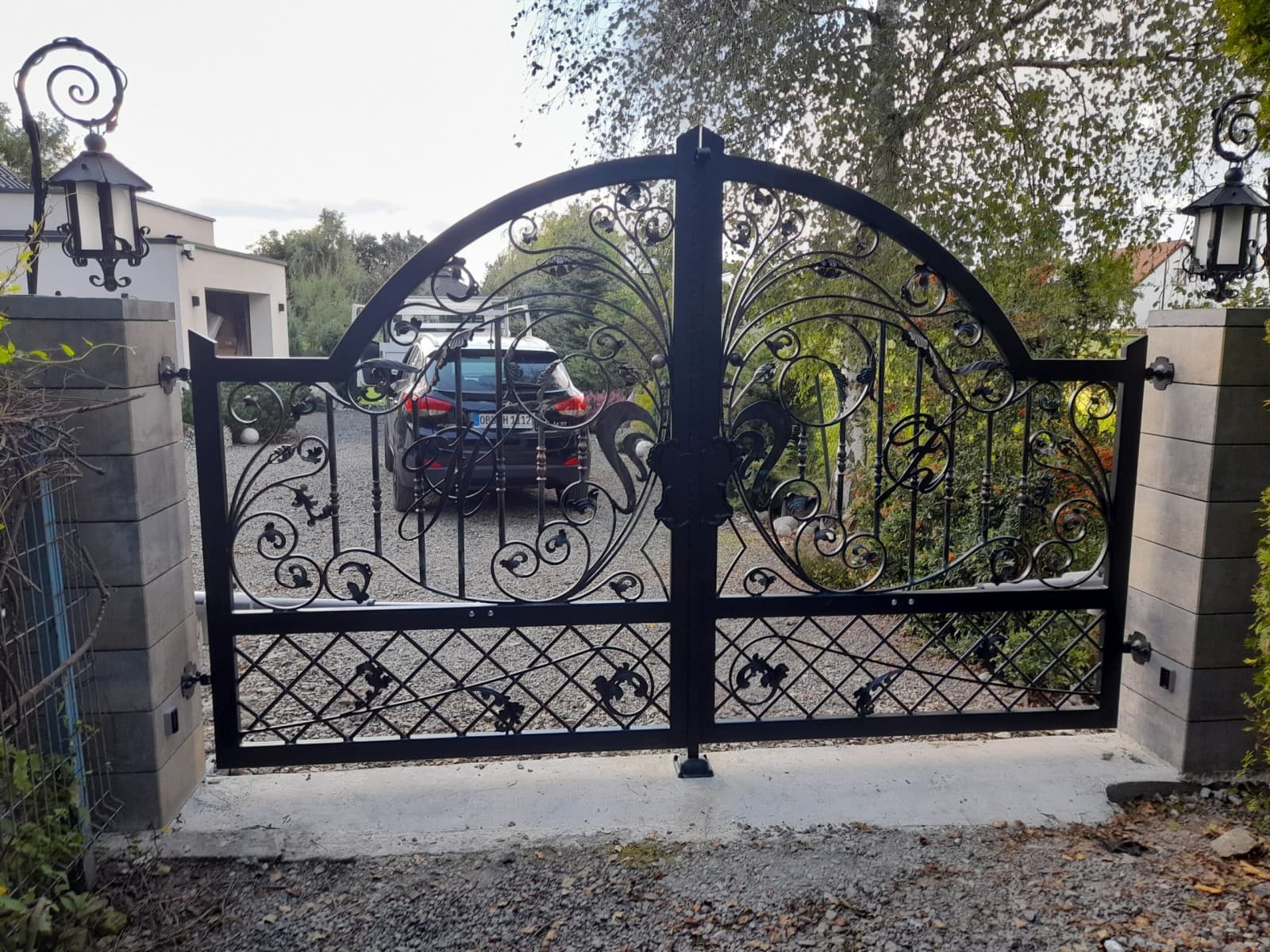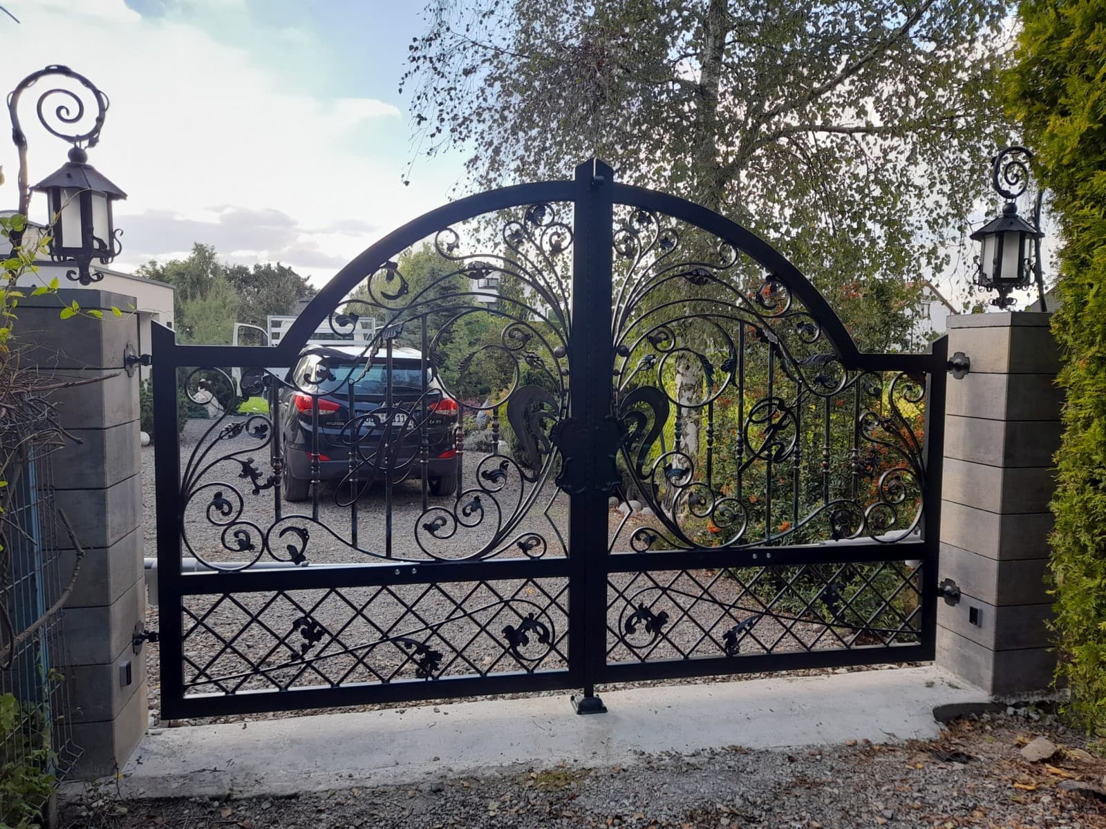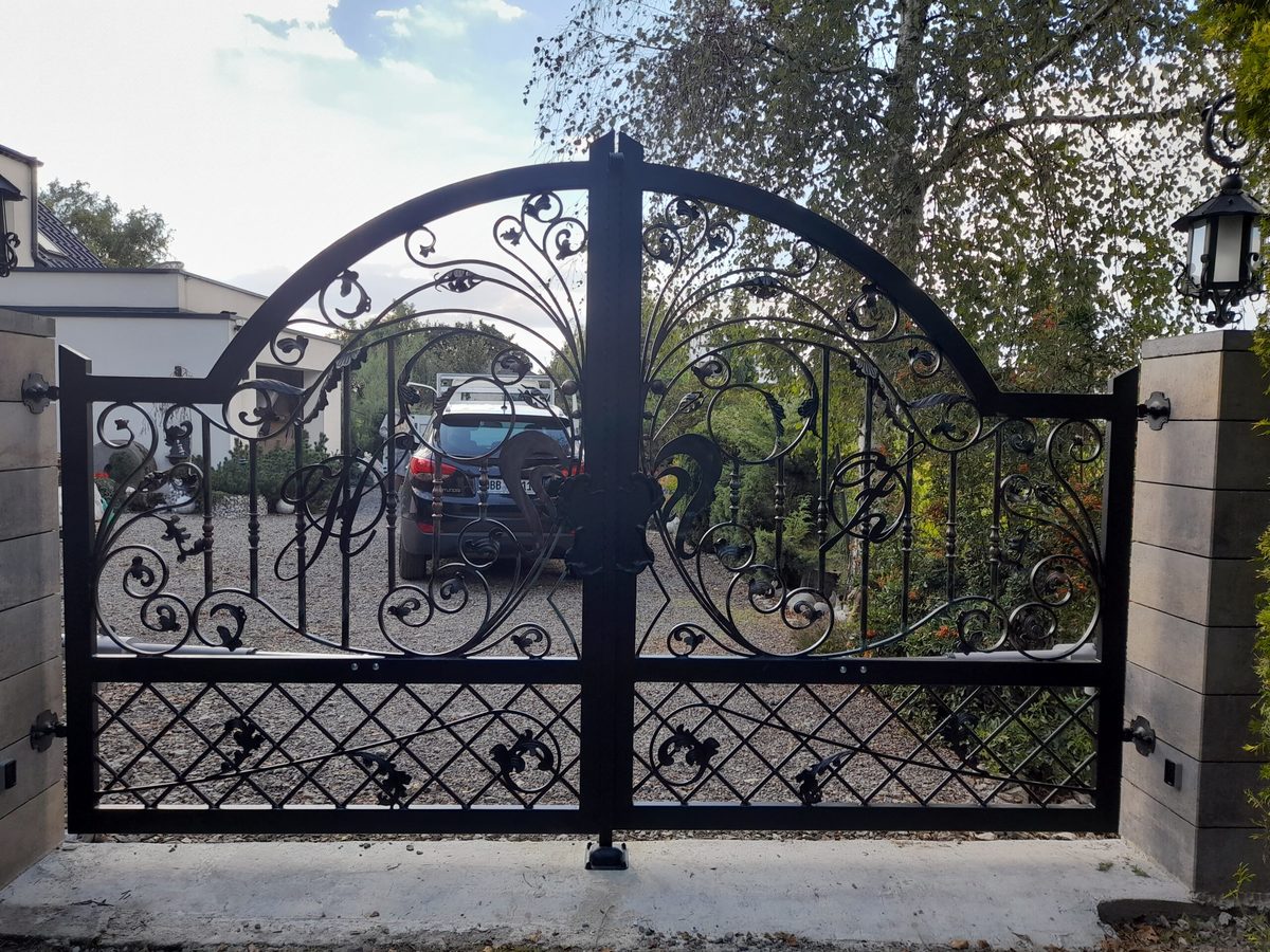 Brama ogrodzeniowa z furtką, wjazdowa, uchylna, kuta glamour BU 091