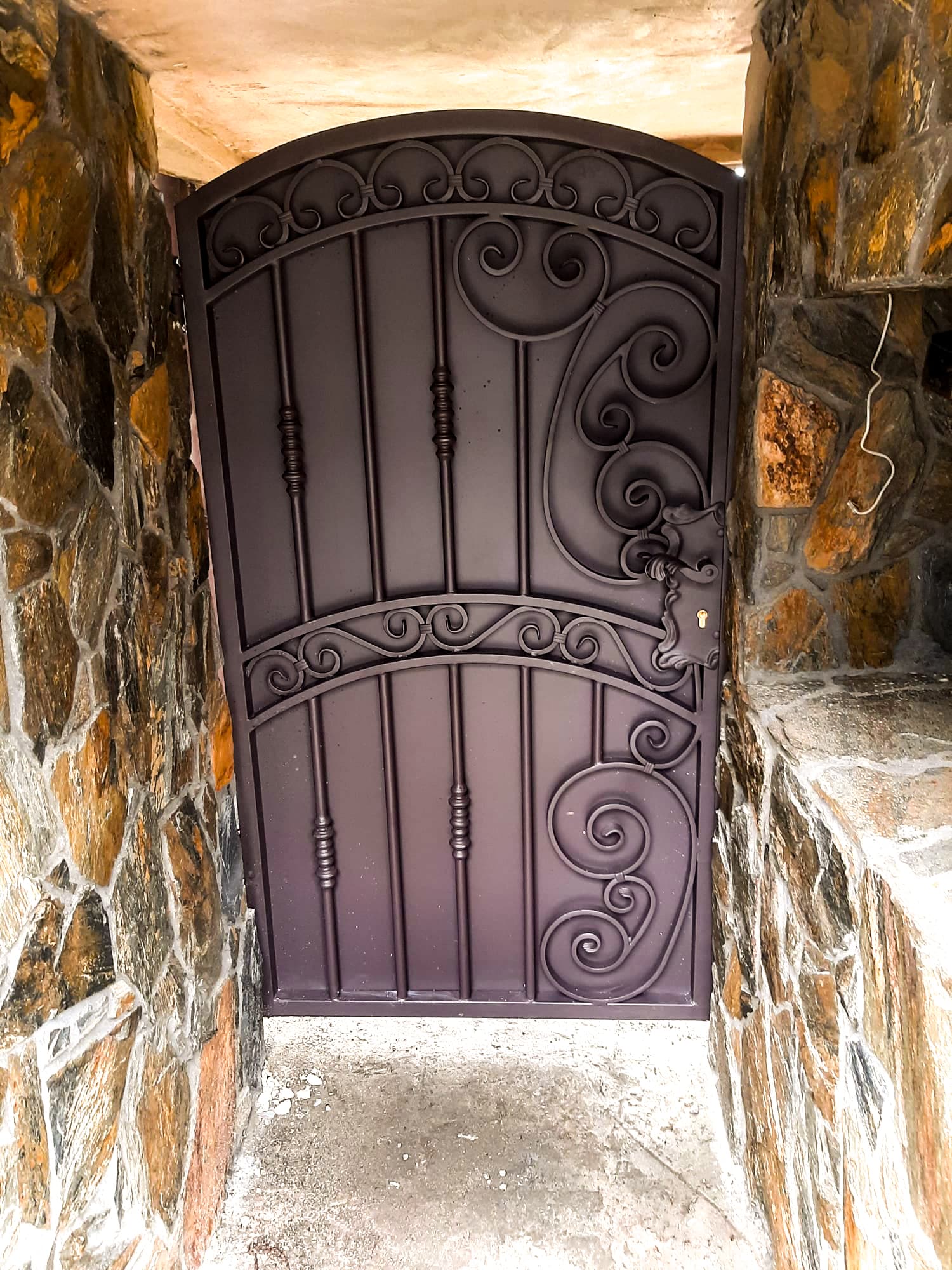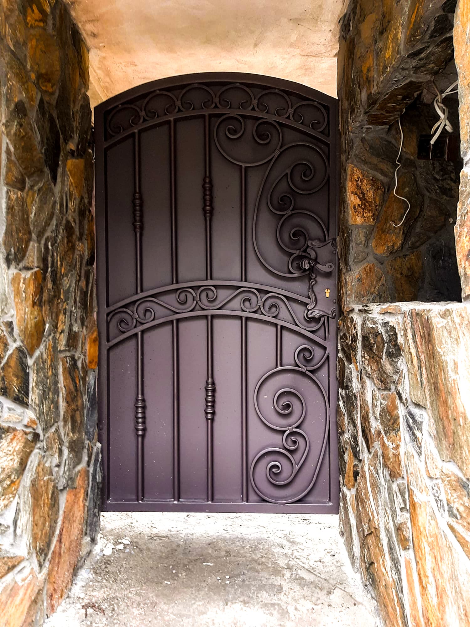 Brama ogrodzeniowa wjazdowa, uchylna, kuta ze zdobieniem BU 095