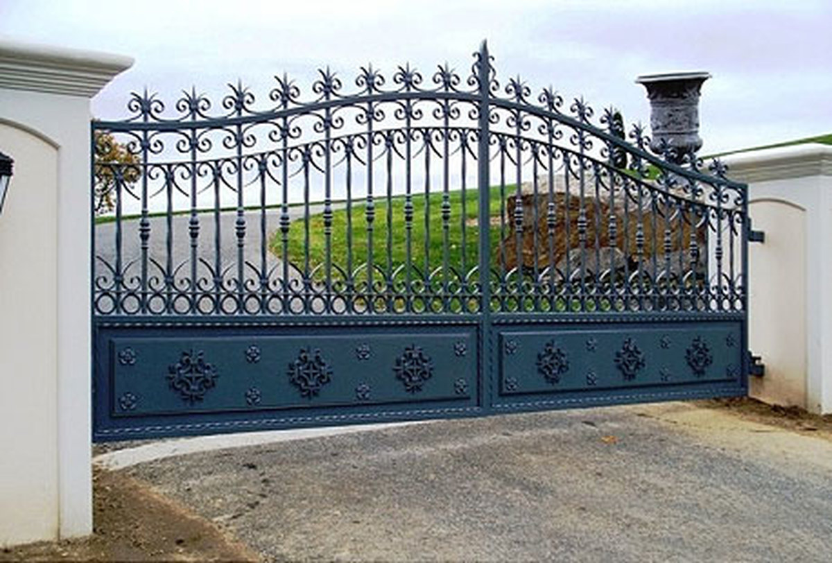 Brama dwuskrzydłowa, wjazdowa, uchylna, kuta BU 105