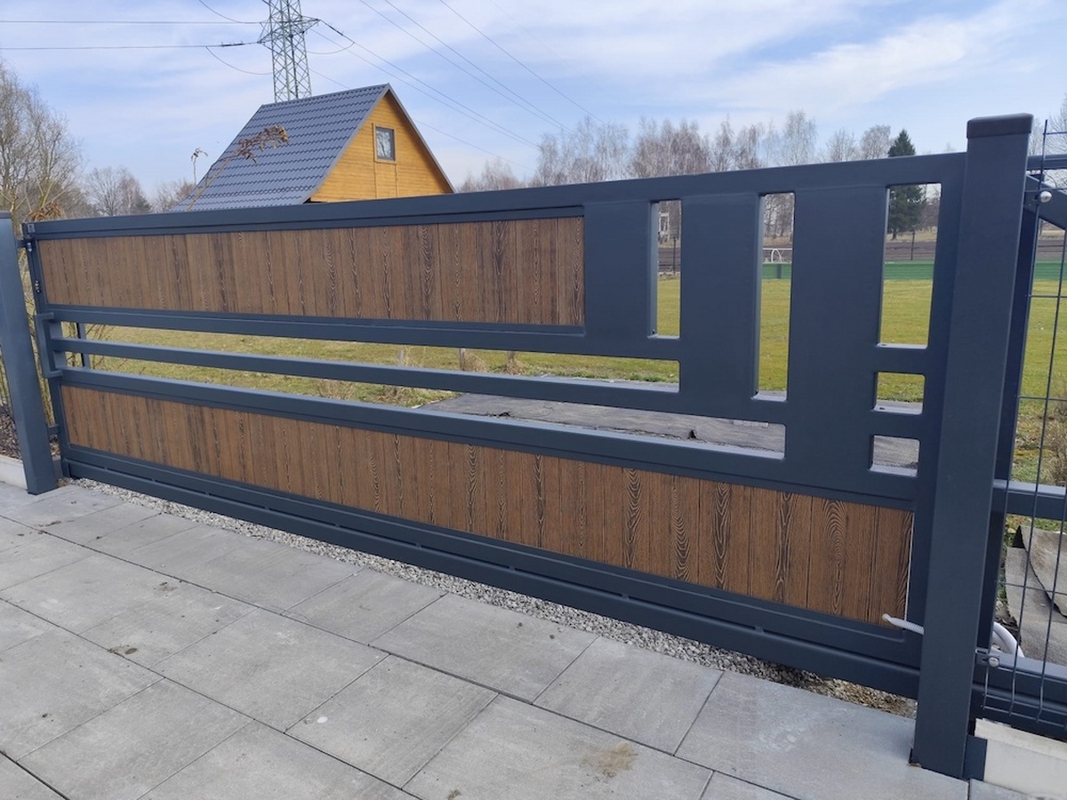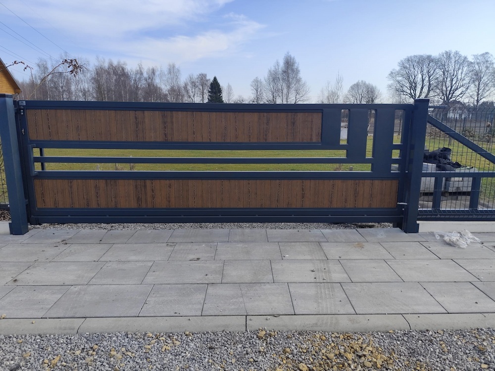Brama przesuwna nowoczesna z deską kompozytową BP 035