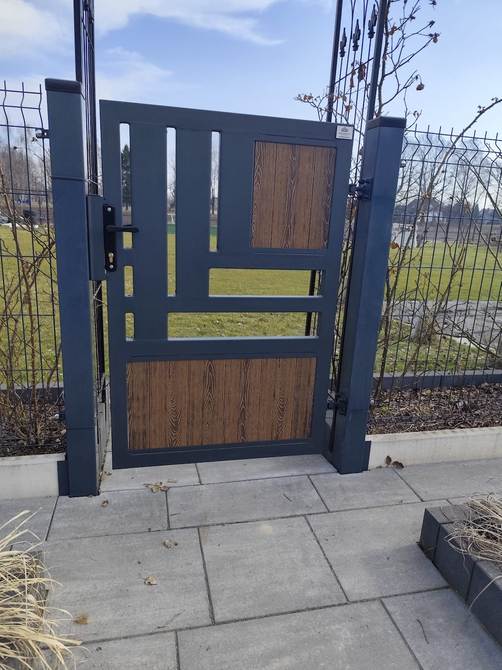 Brama wjazdowa przesuwna z furtką ogrodzeniowa czarna matowa BP 033