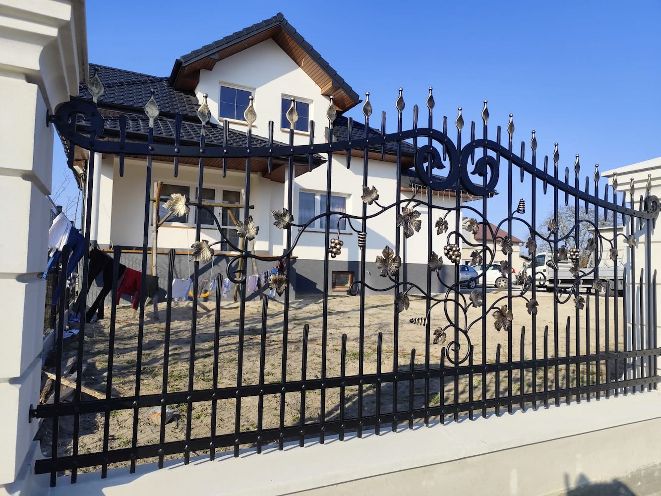 Ogrodzenie kute czarne z ozdobnymi ornamentami OK 062